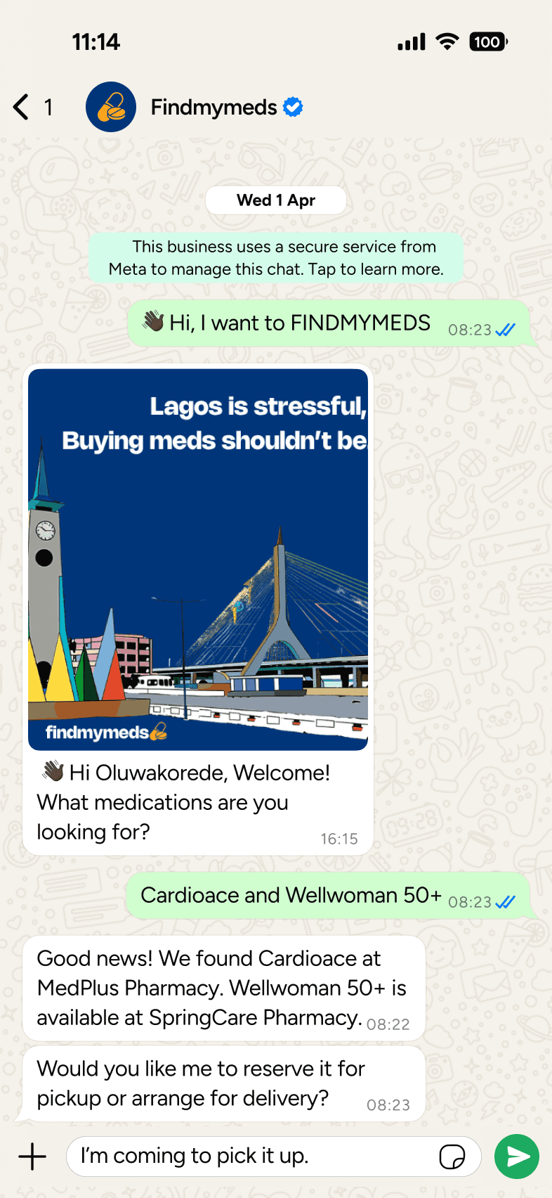 We help you find the closest pharmacy that stocks your meds- All on WhatsApp